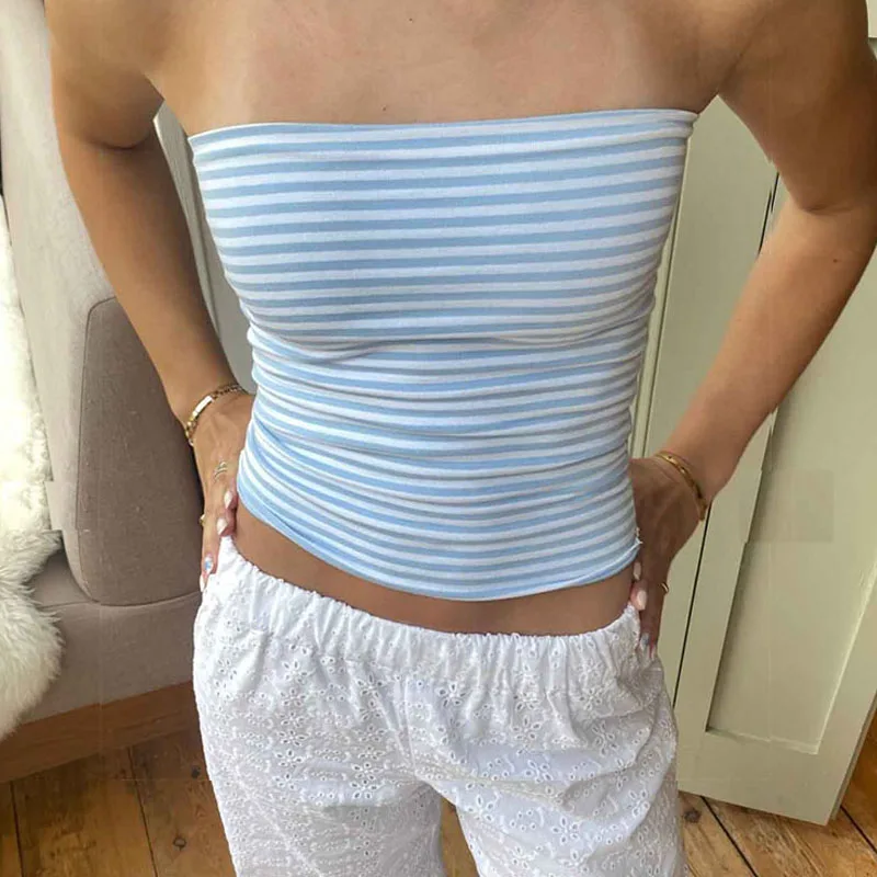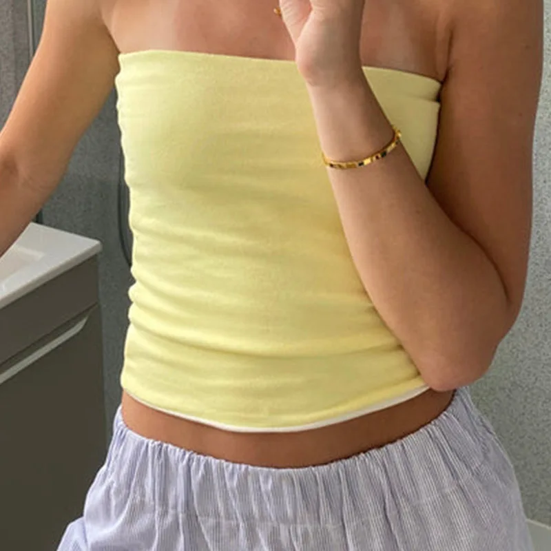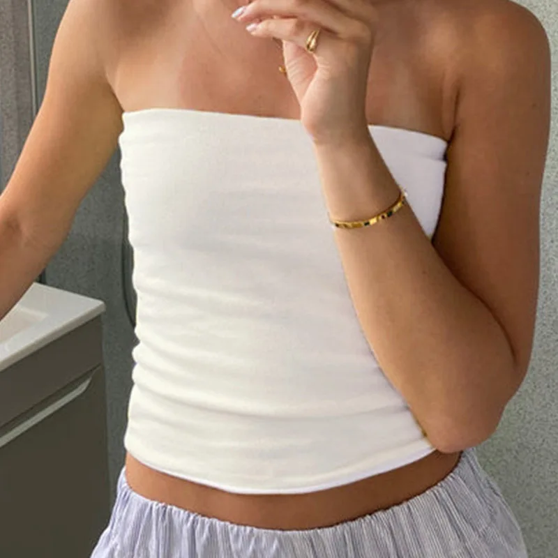 Women’s Strapless Cropped Tube Top – Off-Shoulder Backless Vest